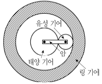 19그림과 같은 유성 기어 트레인에서 잇수가 40개인 태양 기어가 엔진에 의해 3,000rpm의 속도로 시계방향으로 회전하고 있다. 이 유성 기어 트레인에서 유성 기어의 잇수는 20개이고, 링 기어의 잇수는 80개이다. 태양 기어를 입력으로 암을 출력으로 할 때, 암의 속도[rpm]는? (단, 이 유성 기어 트레인에서 링 기어는 기계 프레임에 볼트로 고정되어 있고, 태양 기어는 첫 번째 기어이고, 링 기어는 마지막 기어이다)