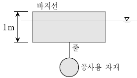 ]은? (단, 줄의 무게와 체적은 무시하고, 물의 단위중량은 10