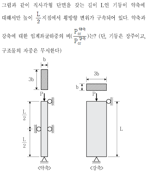 ) 선도를 갖는 재료로 제작된 기둥이 양단힌지로 지지되어 있다. 이 기둥의 임계좌굴응력