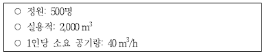 1인당 공기공급량()을 기준으로 할 때 다음과 같은 규모의 실내 공간에 1시간당 필요한 환기 횟수[회]는?