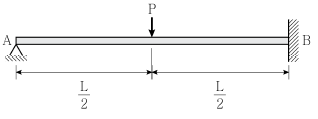 그림과 같이 하중을 받는 부정정 구조물의 A점에서 수직반력의 크기는? (단, 보의 휨강성 EI는 일정하며, 보의 자중은 무시한다)