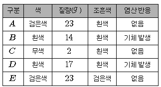 광물의 여러 가지 특성을 조사한 후, 다음과 같이 표로 정리하였다.