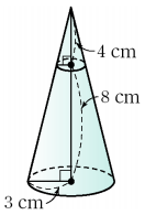 다음 그림과 같이 원뿔을 밑면에 평행한 평면으로 잘라서 생기는 작은 원뿔의 밑면의 반지름의 길이는?