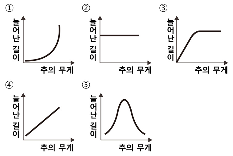 추의 무게와 용수철의 늘어난 길이는 어떤 관계가 있는가?