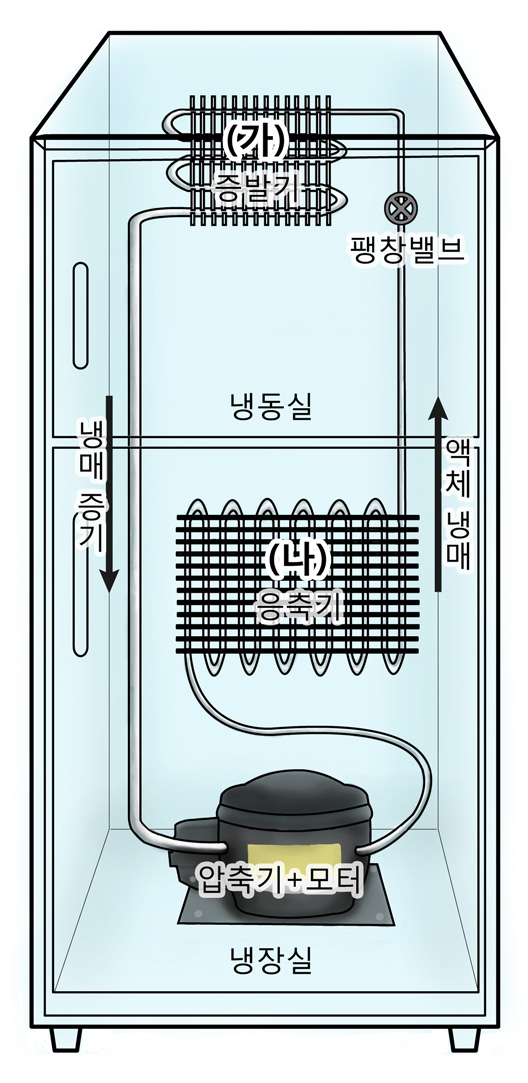 9그림은 냉장고의 구조를 모식도로 나타낸 것이다.