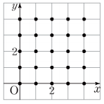 다음 그림과 같이 좌표평면 위에 25 개의 점이 있다. 일차 함수 y= 3 x+3 의 그래프를 y 축의 방향으로 평행이동 한 일차함수의 그래프 중에서 아래 그림의 점 중 두 점을 지나는 것의 개수를 구하여라.