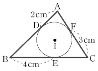 다음 그림에서 점 I 가 △ABC의 내심이다. =2 cm ,