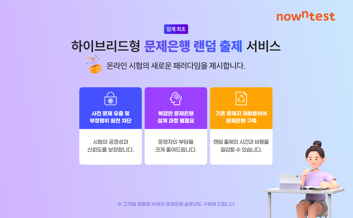 나우앤테스트, 하이브리드형 문제은행 랜덤 출제 서비스 개시